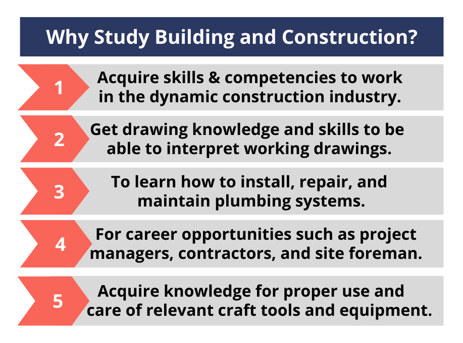 The building and construction course involves learning practical and technical skills such as construction, renovation, and building maintenance, among others, for career growth and to contribute to existing infrastructure. Various factors determine the length of building and construction courses, such as the complexity, mode of study, and the nature of the program. However, certificate-level courses typically take one year, diploma-level programs take one to three years, and bachelor’s degree studies go up to five years.